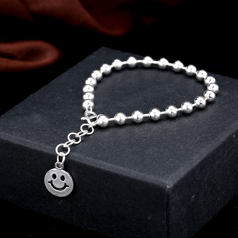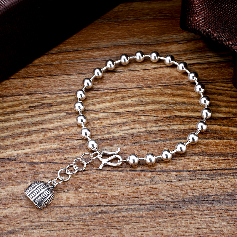 Pure silver round pearl handmade woman with silver beads handmade personality girlfriends Sister Lovers ornaments Korean version Fashion bracelet
