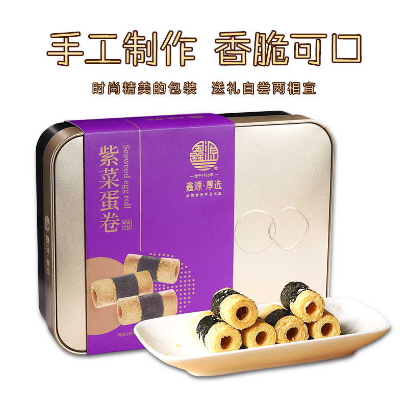 Xin Yuan Pure Handmade Purple Vegetable Sea Tundra Egg Roll 330g Polo Coil Sandwich Egg Roll Casual Snacks Small Biscuit Pastry