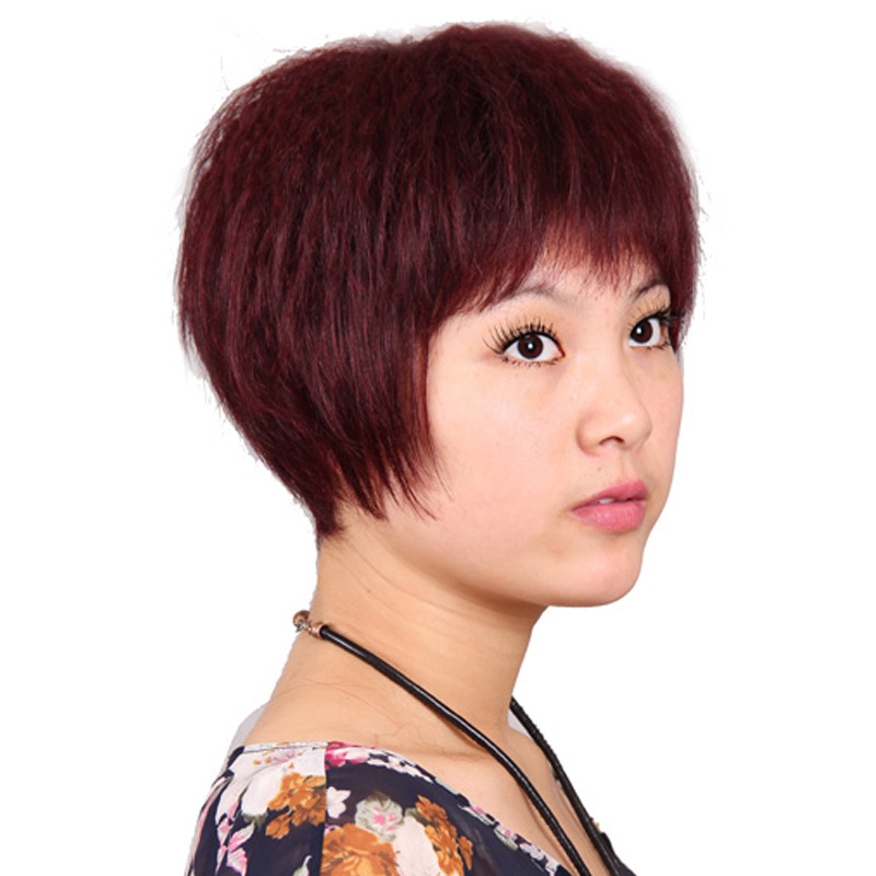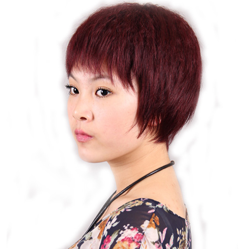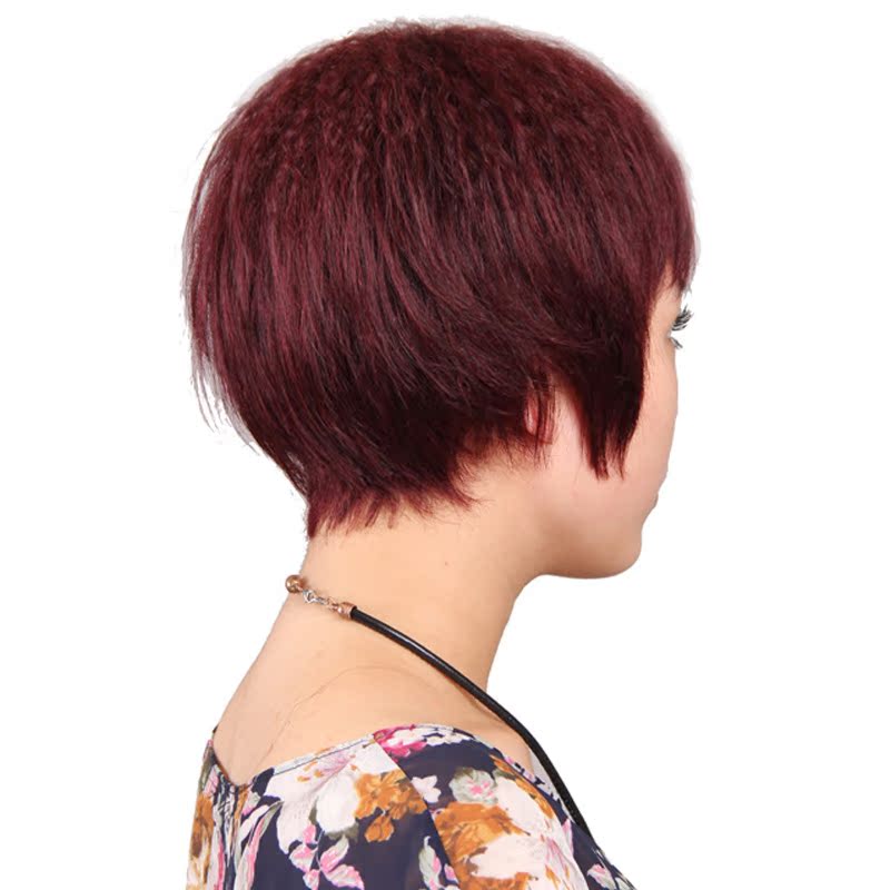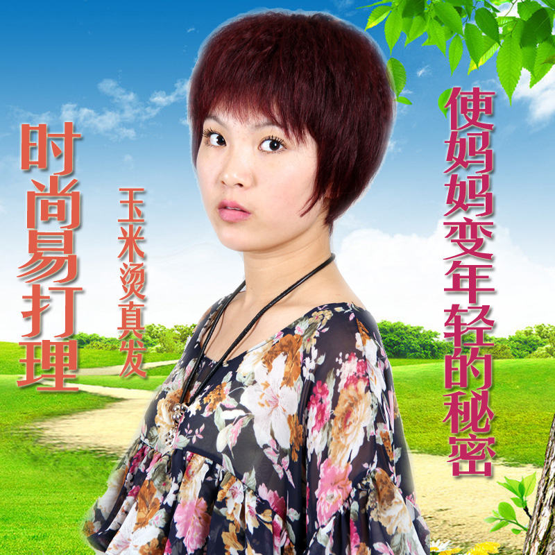 Fashion middle-aged wig Women's headgear Short curly Bangs Real hair Oblique Bangs Short Curly Wig