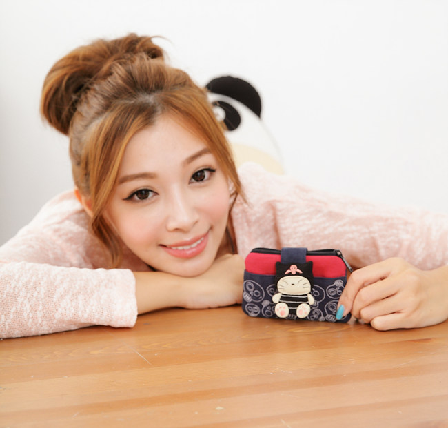 Clear Cabin Kitty Girl Japan South Korea Brief Personality Cloth Art Card Bag Small Bag Key Key Coin Zero Wallet 221362
