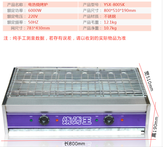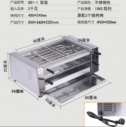 Commercial smokeless single-layer double-layer electric grill stainless steel electric grill kebab vegetable upper and lower layer electric oven