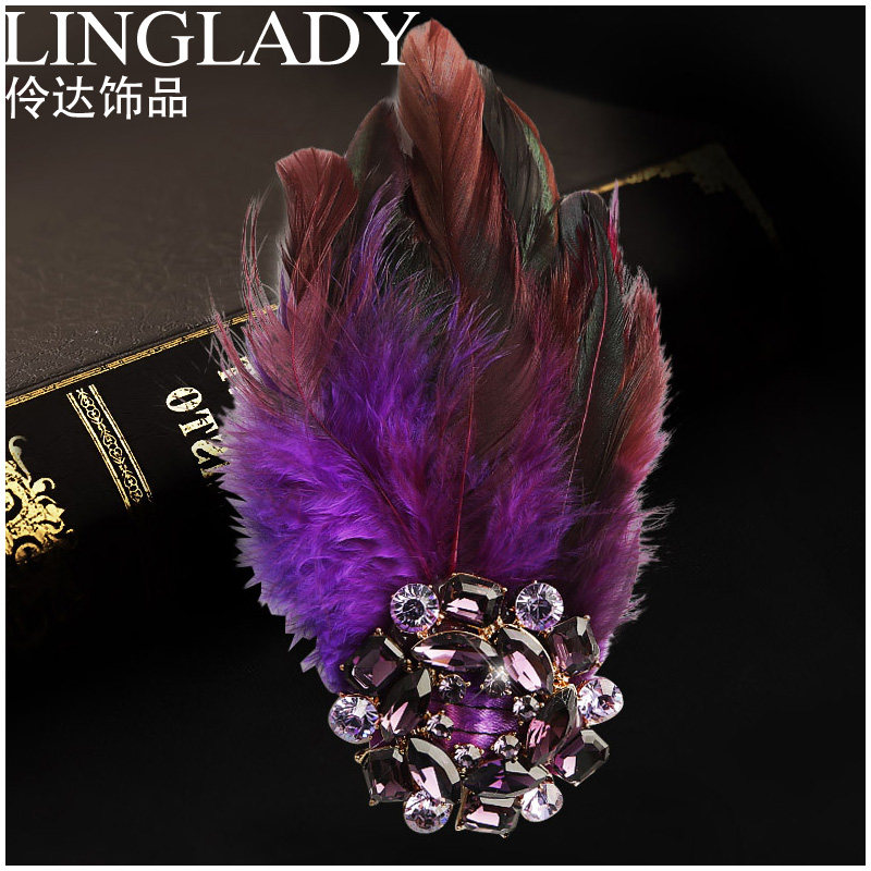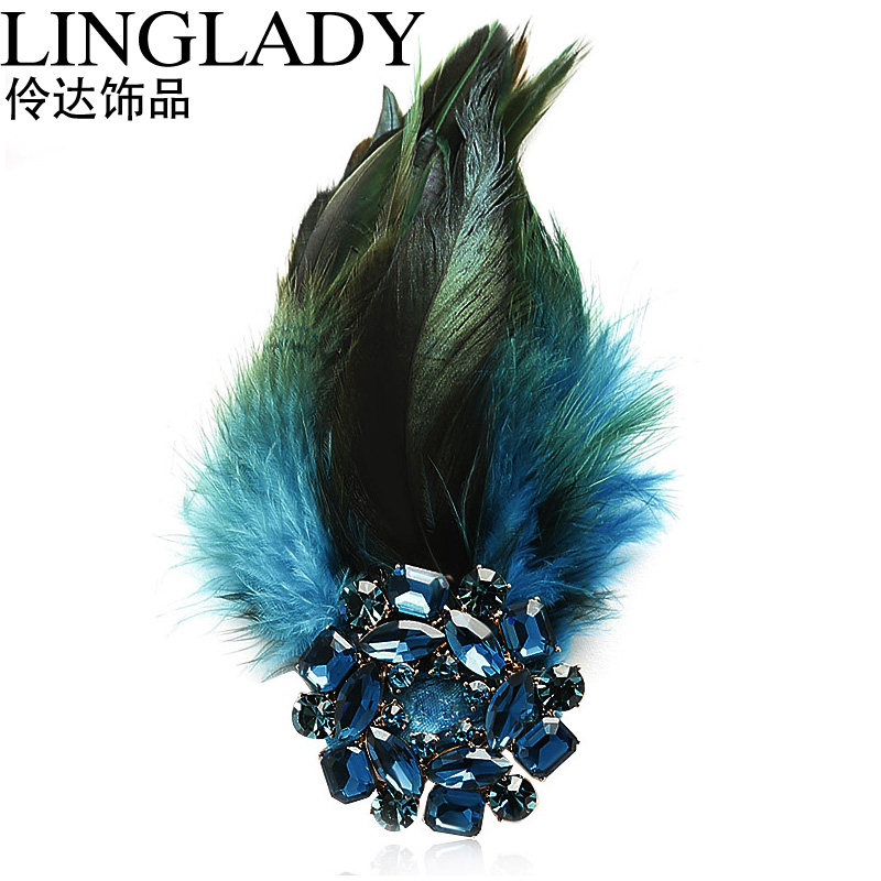 Lingda Original Ornament Blue Brooch Pin Imitation Crystal Flower Wheel Crystal Chest Flower Personality Feather Chorus Performance