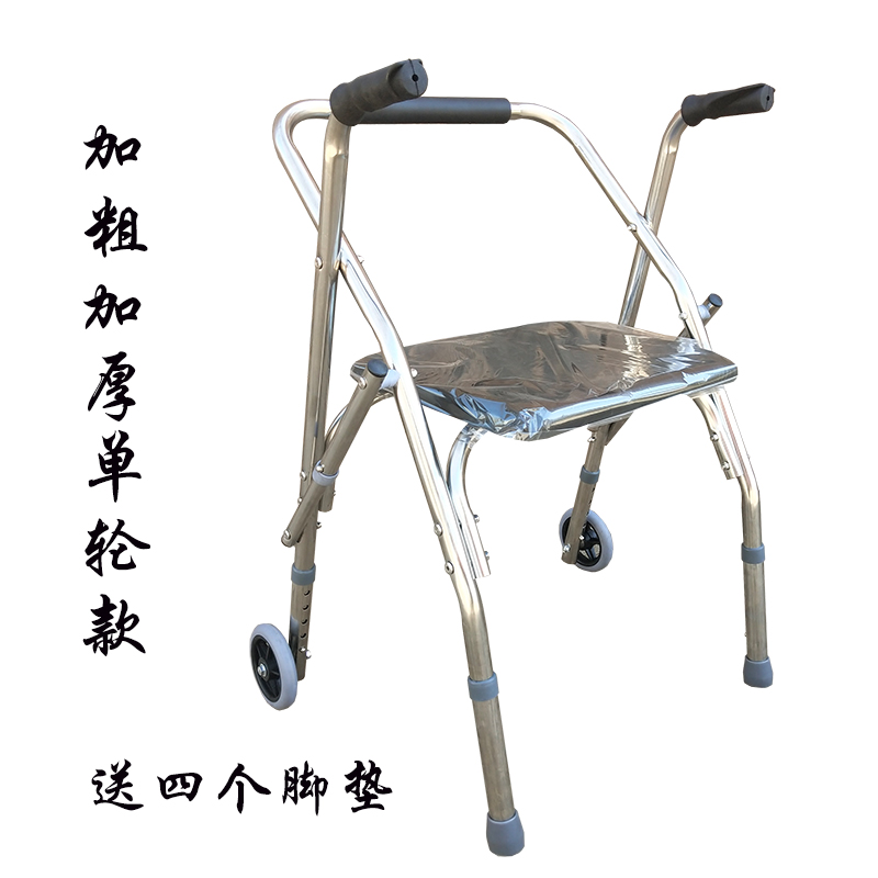 Thickened elderly walker with seat and wheeled elderly four-legged cane stool walker walker trolley folding