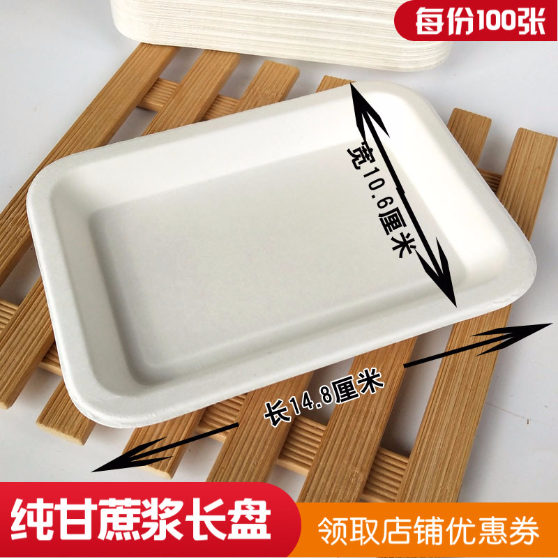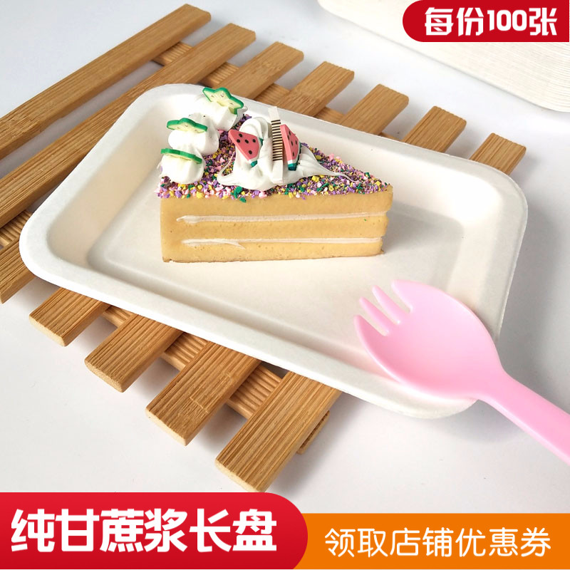 Rectangular pulp disc disposable cake cane plate thickens household birthday toddler hand barbecue tableware