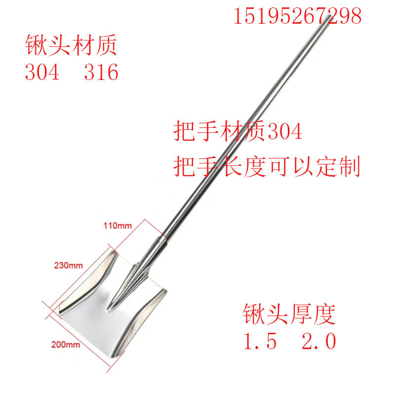 Stainless steel shovel 304 foreign shovel square head shovel chemical shovel food shovel shovel acid and alkali corrosion resistance 200*230