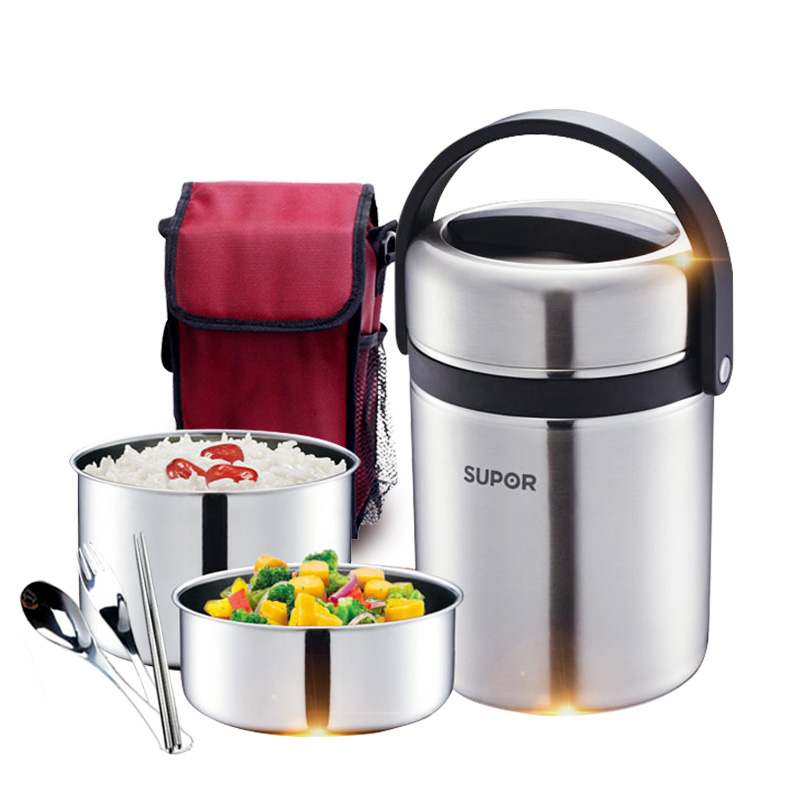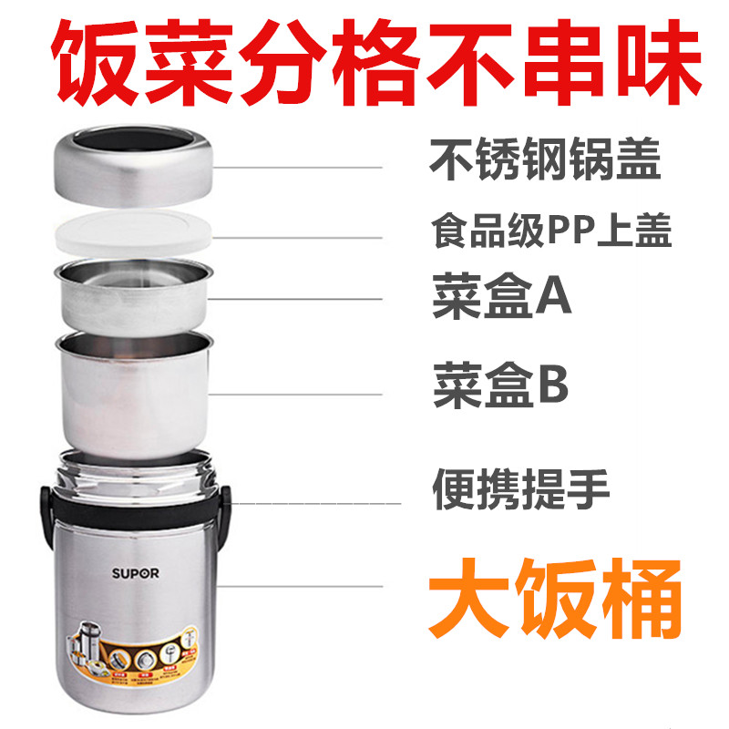 Supor insulation lunch box 304 stainless steel three-layer lunch box portable adult lunch box takeaway pot insulation bucket