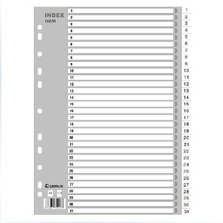 Qixin IX899 index paper 31-page monthly classification paper Punch folder special 11-hole A4 paging paper
