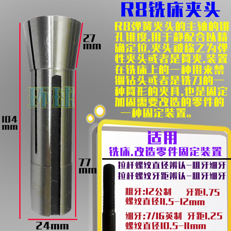 Add Hard R8 collet cylinder clip lock mouth milling machine Milling Machine Chuck Fine Tooth High Precision Suit Accessories Gunta Xian Bed Knife Sleeve-Taobao