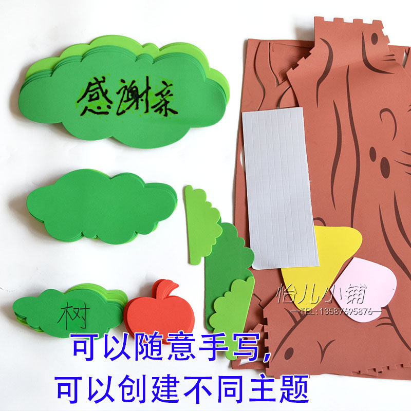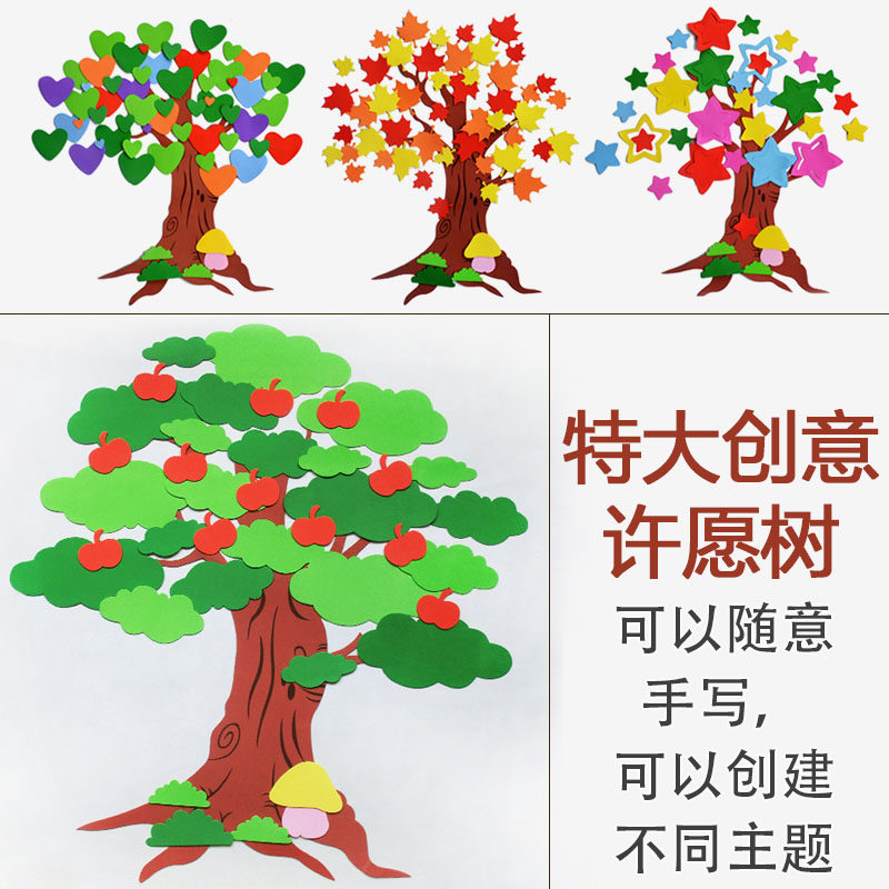 Kindergarten spring wishing tree classroom class culture wall theme blackboard newspaper leaf maple environment decorative wall sticker