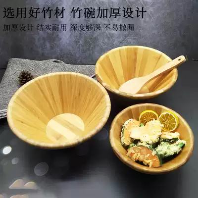 Bamboo salad bowl big fruit plate Western restaurant tableware bamboo bowl fruit salad vegetable basin beauty Chinese herbal mask Bowl