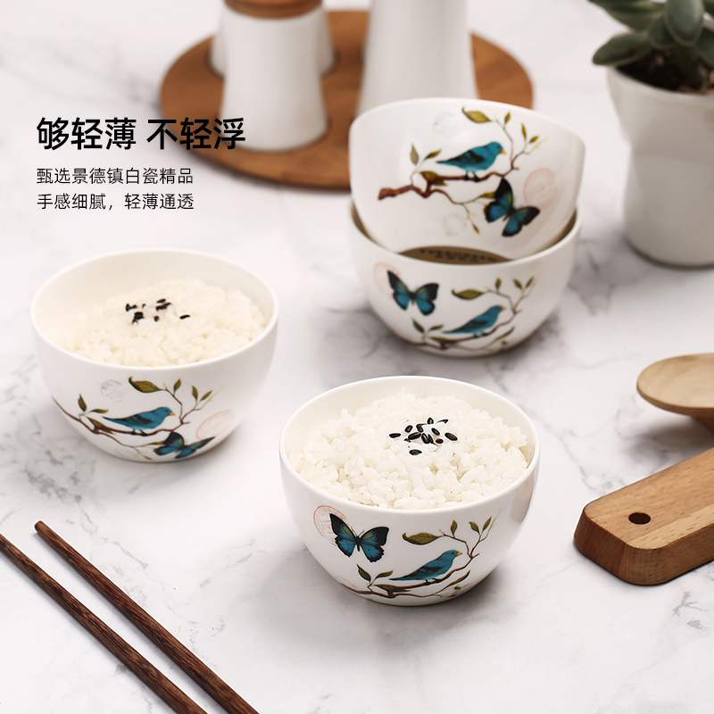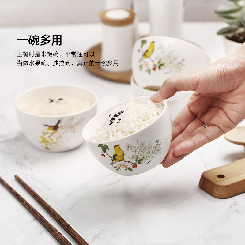 Love house Green American creative printing Ceramic bowl Household cute small bowl Rice bowl Soup bowl Jingdezhen tableware