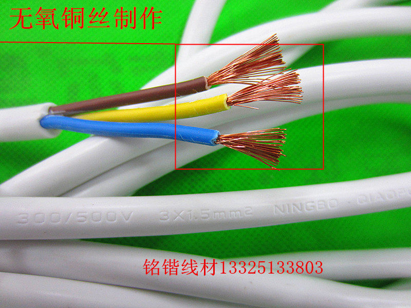 Qiaopu pure copper national standard white power cord 3*1 5 square meters 3-core power cable with plug three items