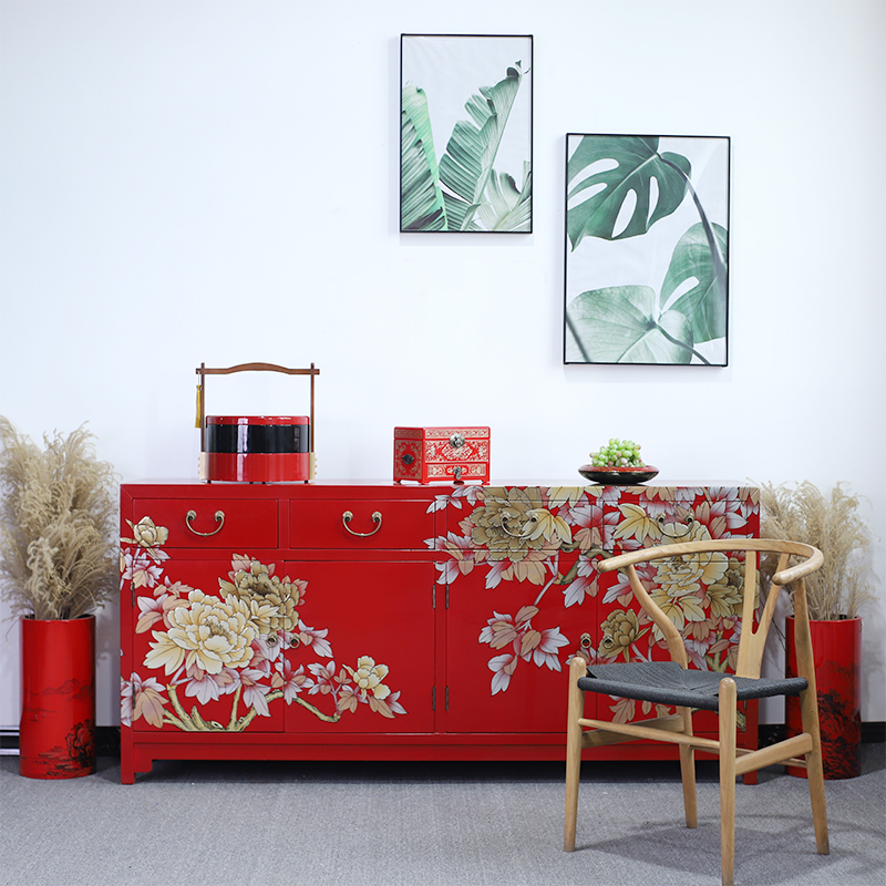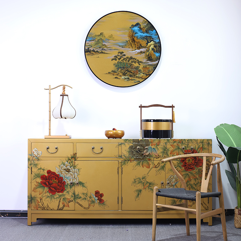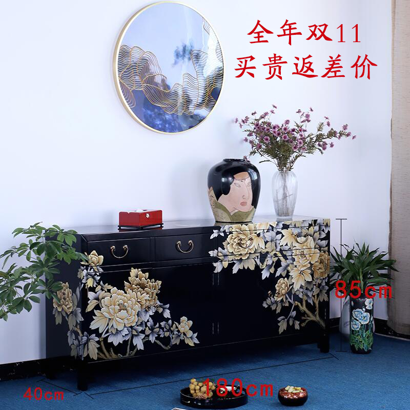 Jinyuan Hengxin Chinese Color Painting Xuanguan Cabinet Classy Door Hall Cabinet Light Lavish Retro Shoes Cabinet Lacquer Cabinet Hand-painted Lacquerware Furniture