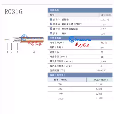 RG316 wire RF cable RG316 SFF-50-1 5 coaxial cable single shielded silver plated 50 ohm