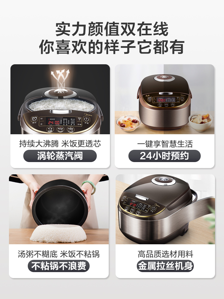 Midea rice cooker household rice cooker smart mini multi-function special price 3-5-6 people 4L upgraded version