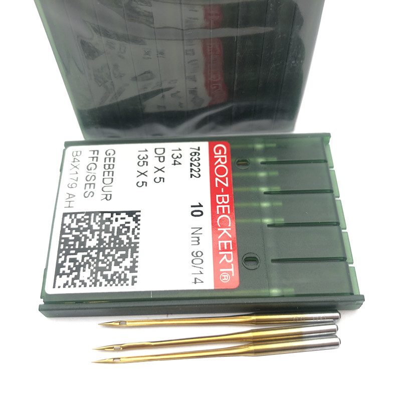 Germany imported Groz machine needle Flat double needle keyhole knotting machine needle Anti-heat machine needle Titanium plating machine needle DP*5 golden needle