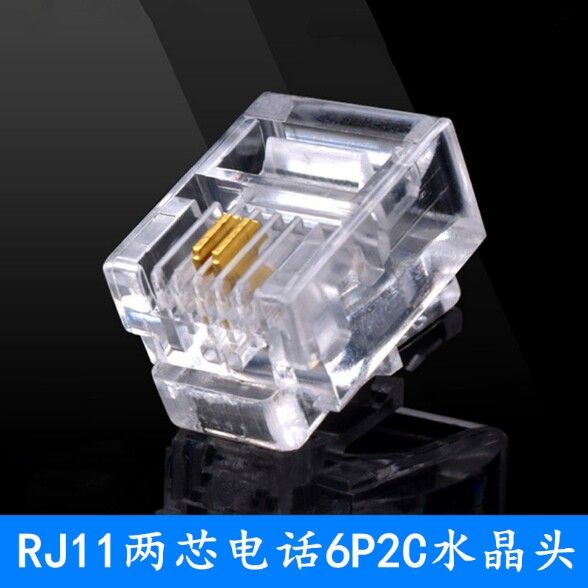 Two-core phone crystal head gold plated 6P2C voice line phone head RJ11 connection head 2 core telephone conversion head