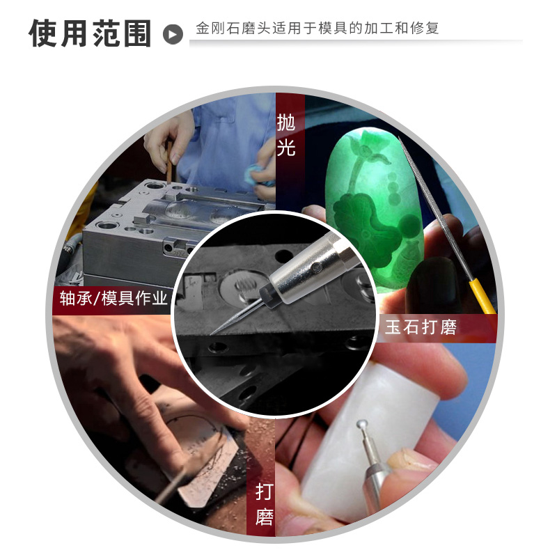 One diamond grinding head 3mm shank grinding needle suit die polished jade sculpted diamond sand grinding head grinding stick