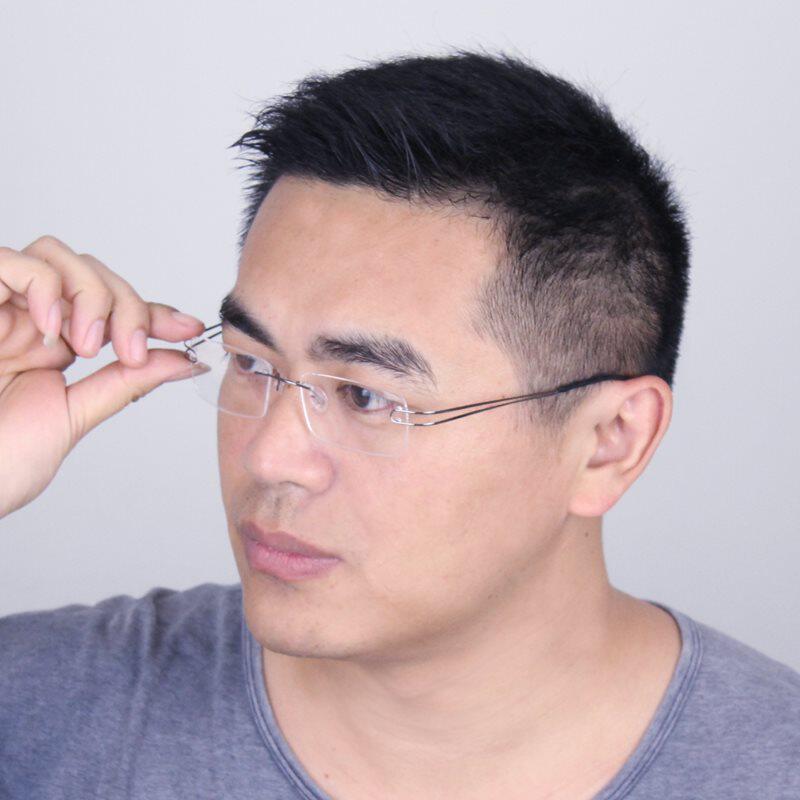 Ultra-light frameless beta titanium pure titanium myopia glasses frame Men's and women's frames Memory big face small face universal diamond cutting edge