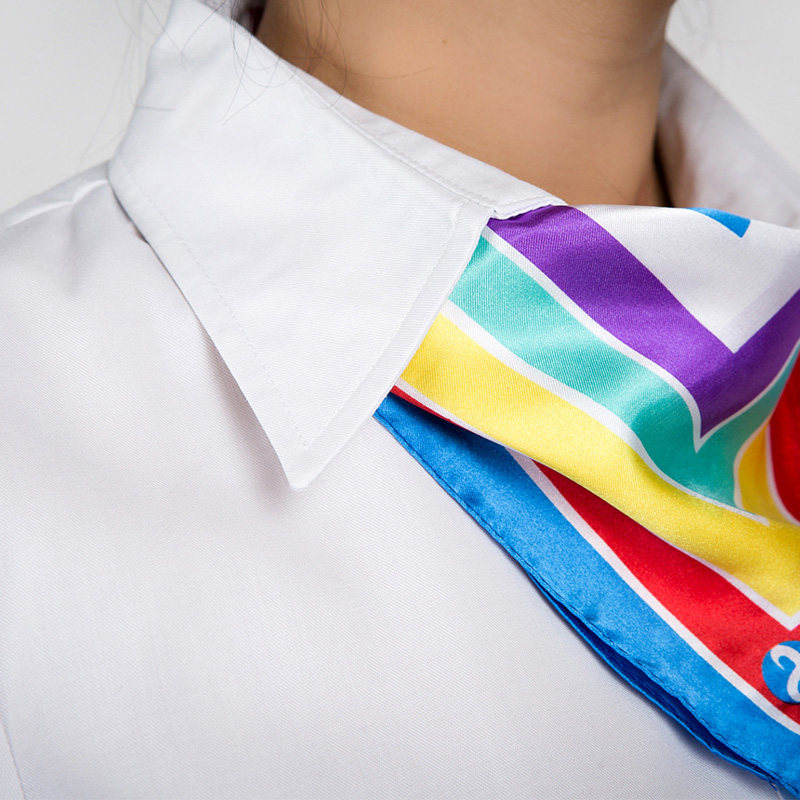 White short-sleeved shirt White short-sleeved shirt skirt Silk scarf Red skirt