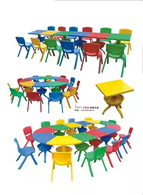 Kindergarten special desks and chairs Round baby 6-piece pool table Plastic game baby tables and chairs Children's tables