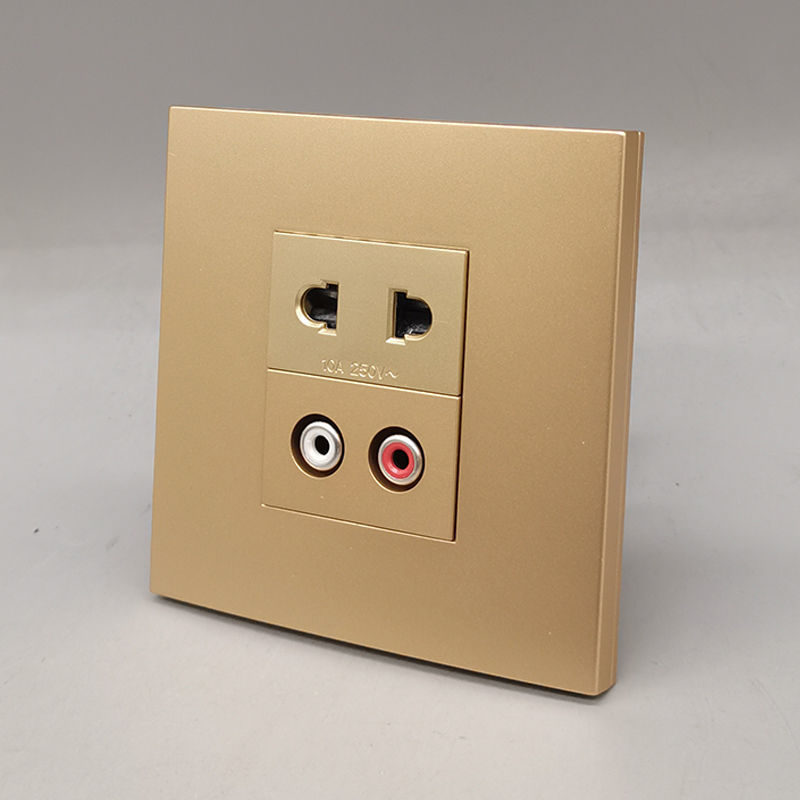 Champagne gold 86 type 10A two-hole power supply Lotus audio socket 2-eye AV double-hole Lotus audio solder-free panel