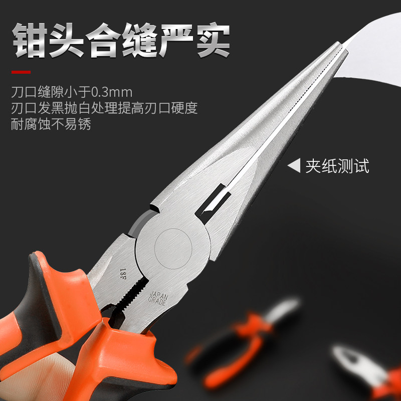 Vise sharp mouth oblique mouth Electrical wire pliers Fish mouth pliers Hardware tools multi-functional and labor-saving 8-inch flat mouth pliers