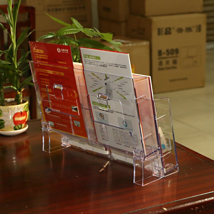 Business Card Case Four-Grid A5 Single-Page Rack Desktop Information Rack Color Page Display Rack Acrylic Transparent Publicity Rack