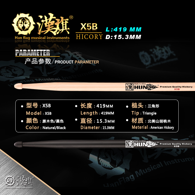 Han brand drum stick X5B drum set Drum mallet Walnut HUN series extended Hanqi Musical Instrument official store