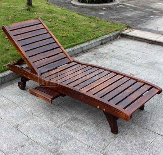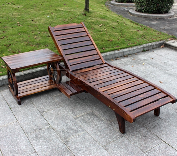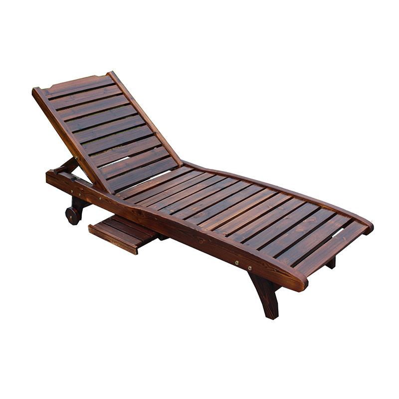 Carbonized outdoor Solid Wood Beach Bed Bed Bed Balcony Balcony Lounge Pool Luncheon Bed Casual Chair