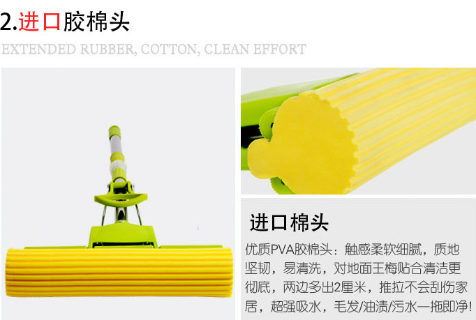 Squeeze Water Absorbent Collodion Cotton Mop Stainless Steel Stainless Steel Mopping Mop Sponge Ground Mop Folio Squeeze Water Tug