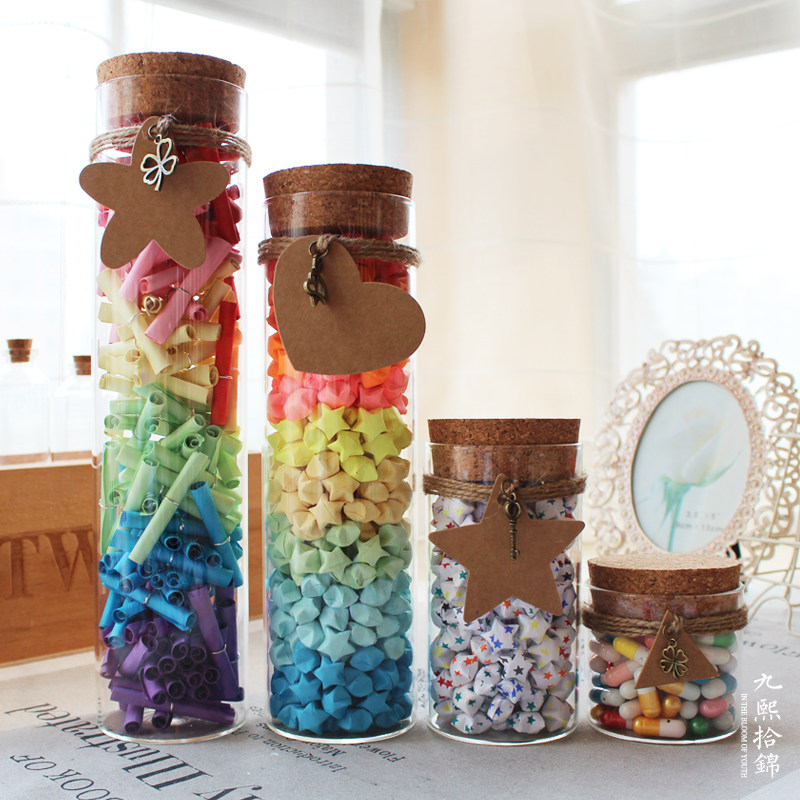 Jiuxi ten Jinxing Stars Bottle wishing glass bottles 365 and 520 lucky stars Bottle Folded Paper Strips of luminous hand-made DIY