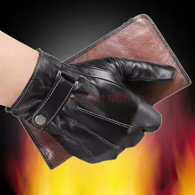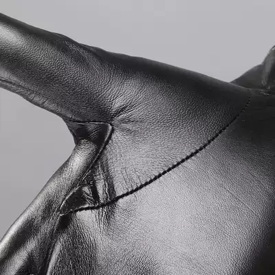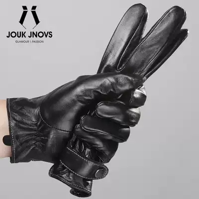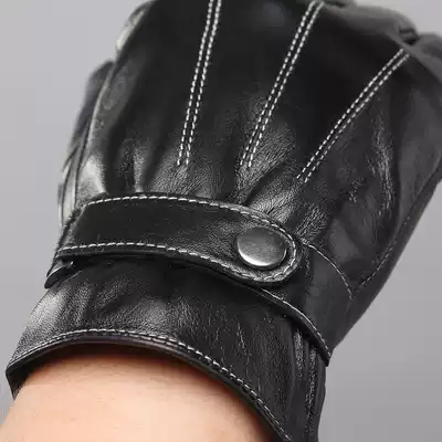 Imported sheepskin fashion men's boutique windproof buckle leather touch touch screen gloves plus velvet riding gloves