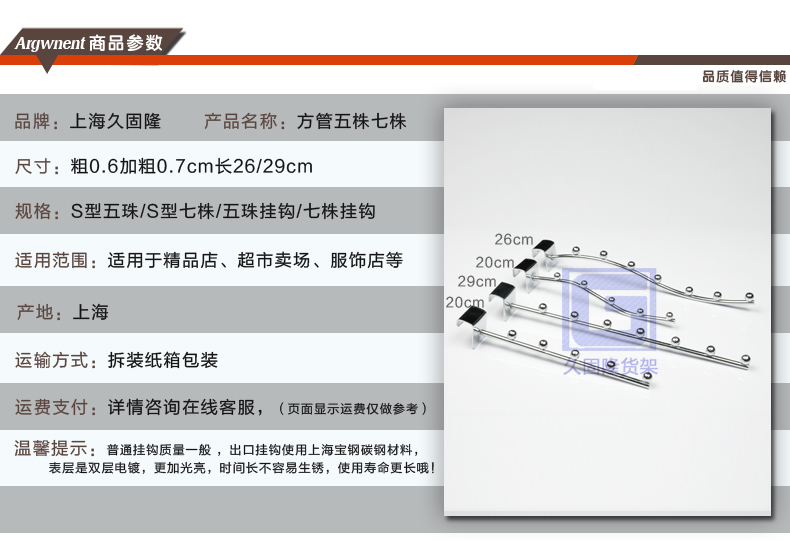 Jiugulong 5 beads seven beads square tube hook clothing store clothing shelf decoration hook display shelf iron hook