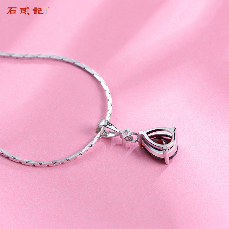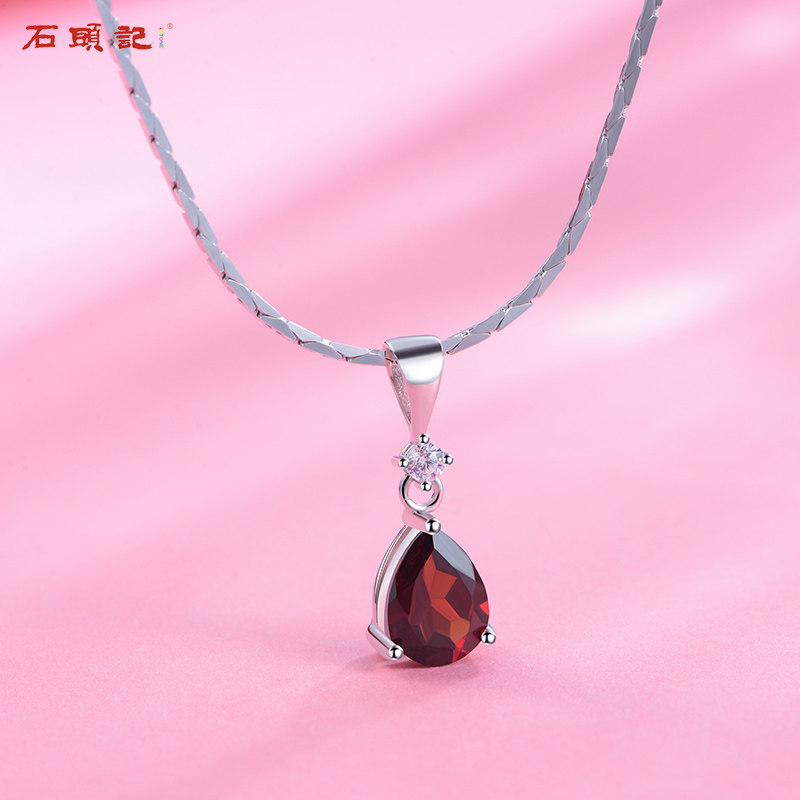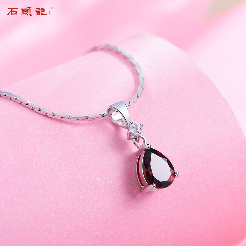 Stone Head Notes Pomegranate Stone Silver Necklace Woman Lock Bone Chain Accessories Birthday Send Girlfriend Gift Pendant Pendant Necklace