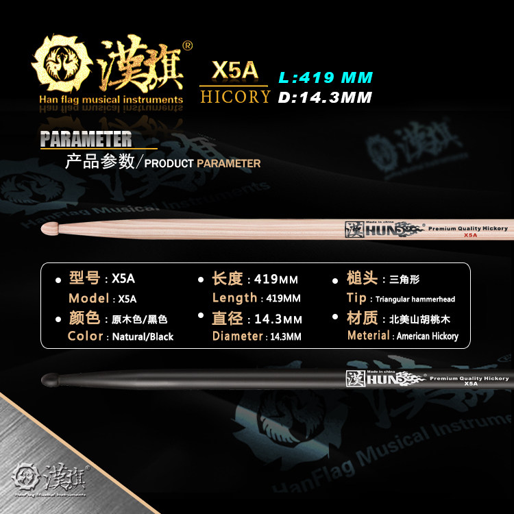 Drum stick X5A drum set Drum mallet extended walnut Han brand HUN series Hanqi Musical Instrument official store