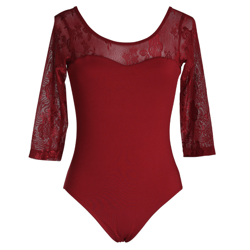 Lace long-sleeved spring and summer art examination women's basic training suit Adult female ballet dance practice suit Gymnastics air suit Yoga