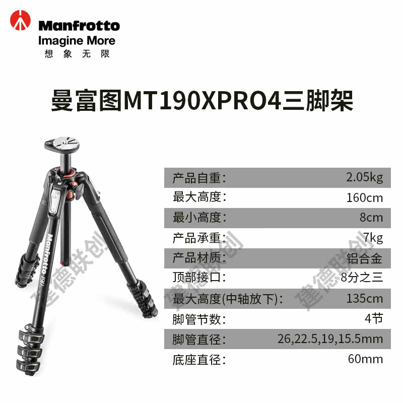 Manfrottomanfrotto MT190XPRO4 single-eye camera aluminum alloy tripod can be sold horizontally