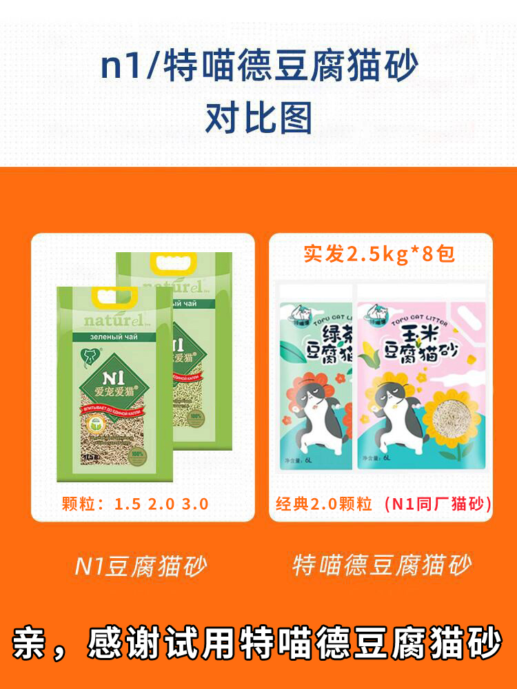 Temeade corn tofu cat litter 20kg-2 0 granules N1 mixed cat litter 6 5kg*3 packs (1 5 fine grains) N1 original corn 6 5kg*3 packs (1 5 grains)