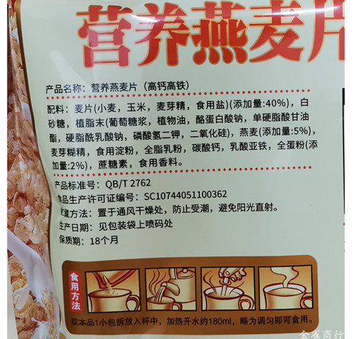 High-calcium and high-iron oatmeal bag 510g milk calcium-added oatmeal bag 510g middle-aged and elderly high-calcium oatmeal bag 510g