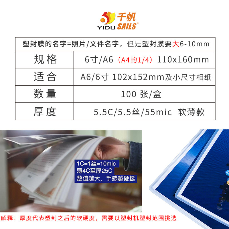 Qianfan photo plastic film 6 inch 5 5 wire A6 card film laminating film 4R transparent scallop paper Plant specimen film Photo paper protective film Photo sealing film paper