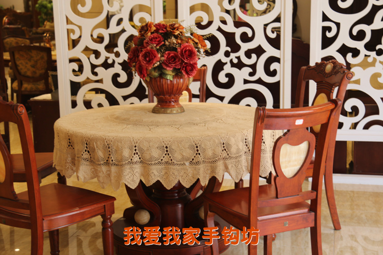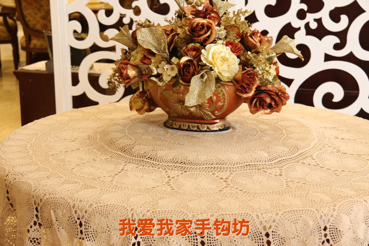 I love my home Handmade crochet hook flower cotton lace hollow round tablecloth