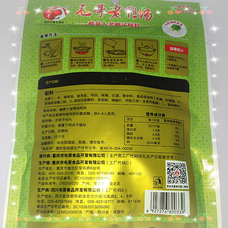 Full 5 bags of Maoge Sour Radish Duck Soup 350g Stewed Soup Soup Base Hot Pot Soup Base