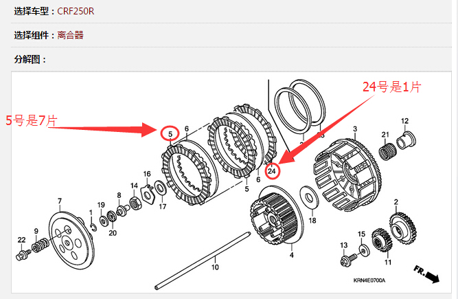 Japanese original plant CRF250R clutch wood sheet 08-17 paragraph 22201-KRN-A10