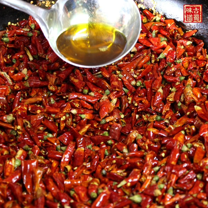 Dried chili Edible salt Monosodium glutamate Sesame Soybean Peanut White sugar Spice Rapeseed oil