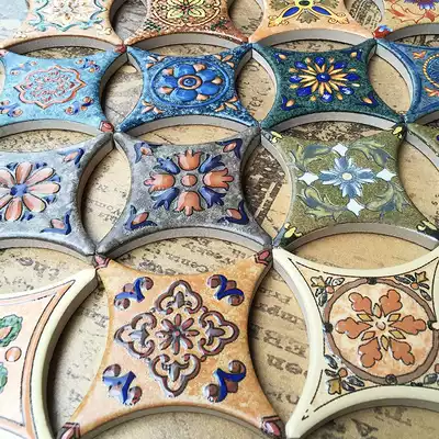 Porcelain Wanjia living room rounded corner brick flower tile Floor tile corner flower accessories Ceramic tile antique brick small flower brick