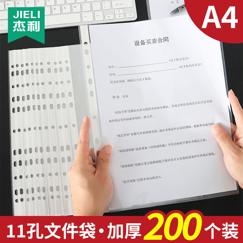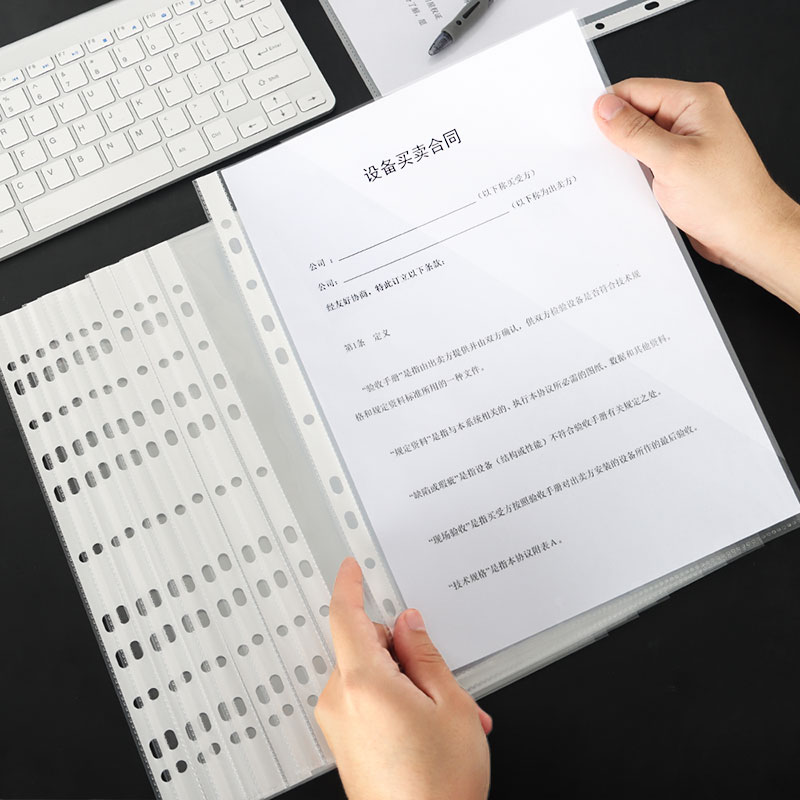 Transparent insert document bag 11 holes loose-leaf protective cover A4 insert bag protective film cover 100 bags Pregnancy test report sheet storage book Ticket storage perforated binder folder folder can be customized