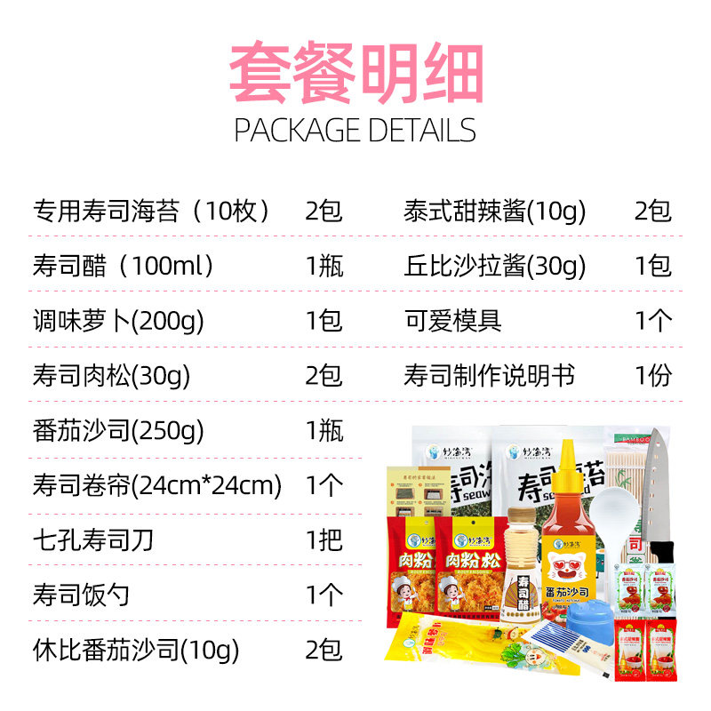 Sushi nori 10 sheets Sushi rolling curtain Sushi vinegar Meat floss Radish strips Sushi knife mold tomato sauce mustard spatula color page