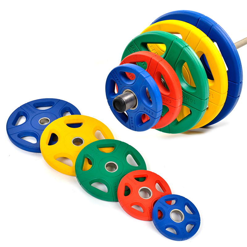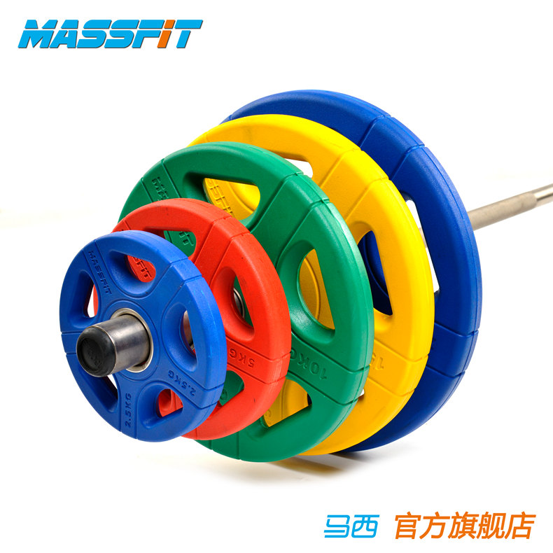 Five-hole color coated rubber large hole barbell piece Austrian piece massfit Massi hand grab barbell piece Household dumbbell piece