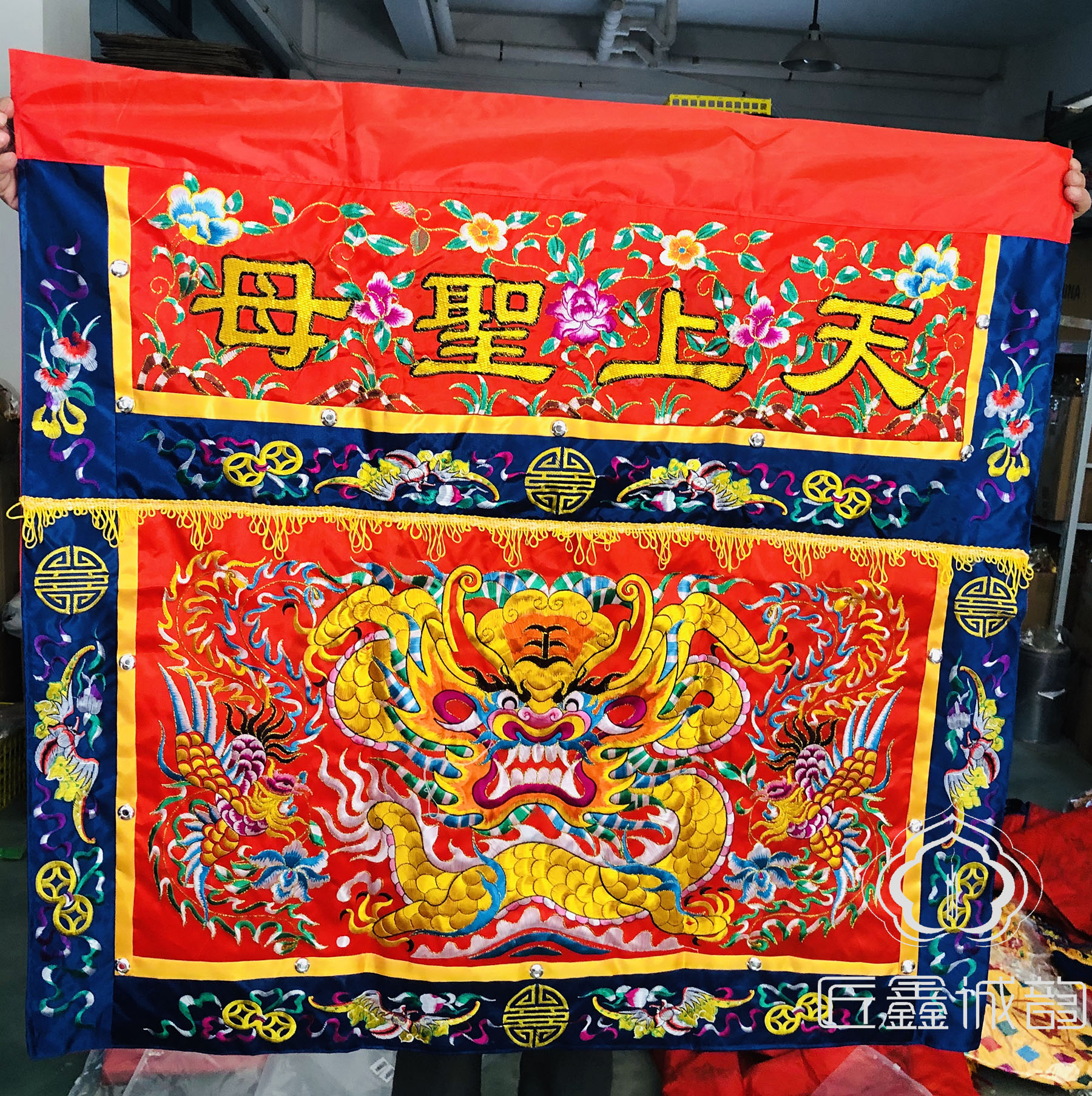 Table version table front cloth for table circumference Paoking the Emperor Guangzizzun The Virgin of the sky in heaven God respectfully greet the Holy driving embroidery